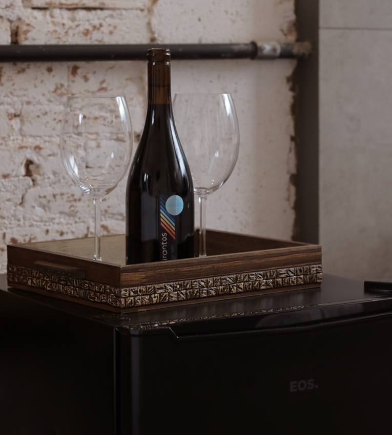 A vinícola possui vinhedo, lago, lareira, wine-bar, áreas verdes para caminhada, vistas para todos os lados.